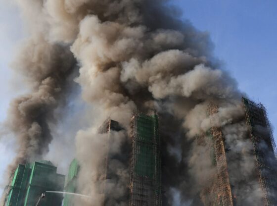 THIS is the terrifying moment a huge fire engulfs three residential towers in Hong Kong – trapping residents in their apartments. Flames and thick smoke…